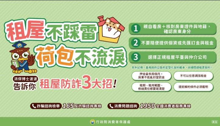 【消費者保護宣導】租屋不採雷 荷包不流淚!!!